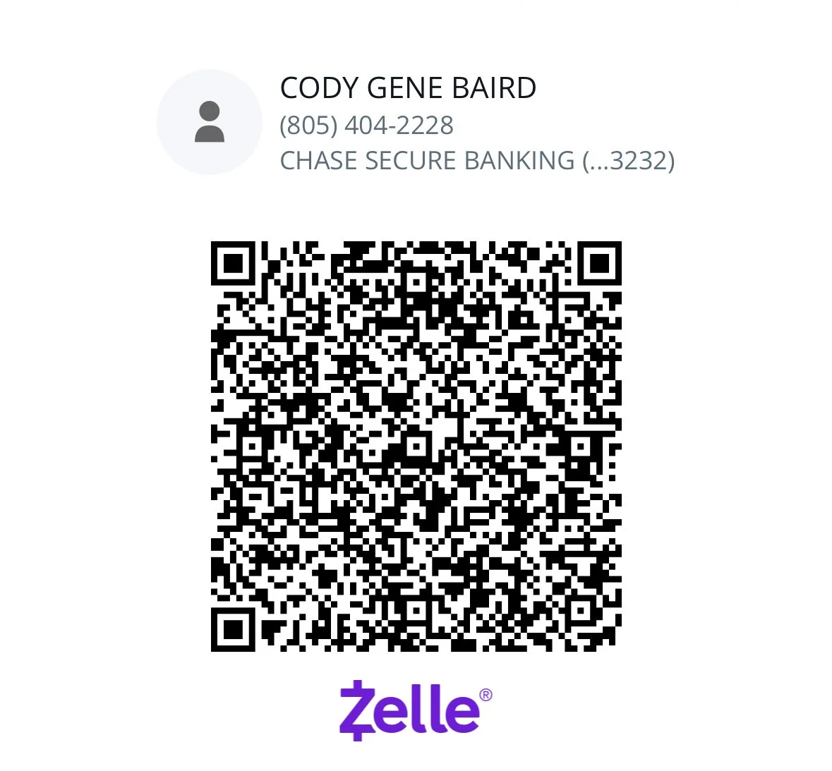 Please click a payment option to be redirected, or scan the QR code to pay with Zelle: